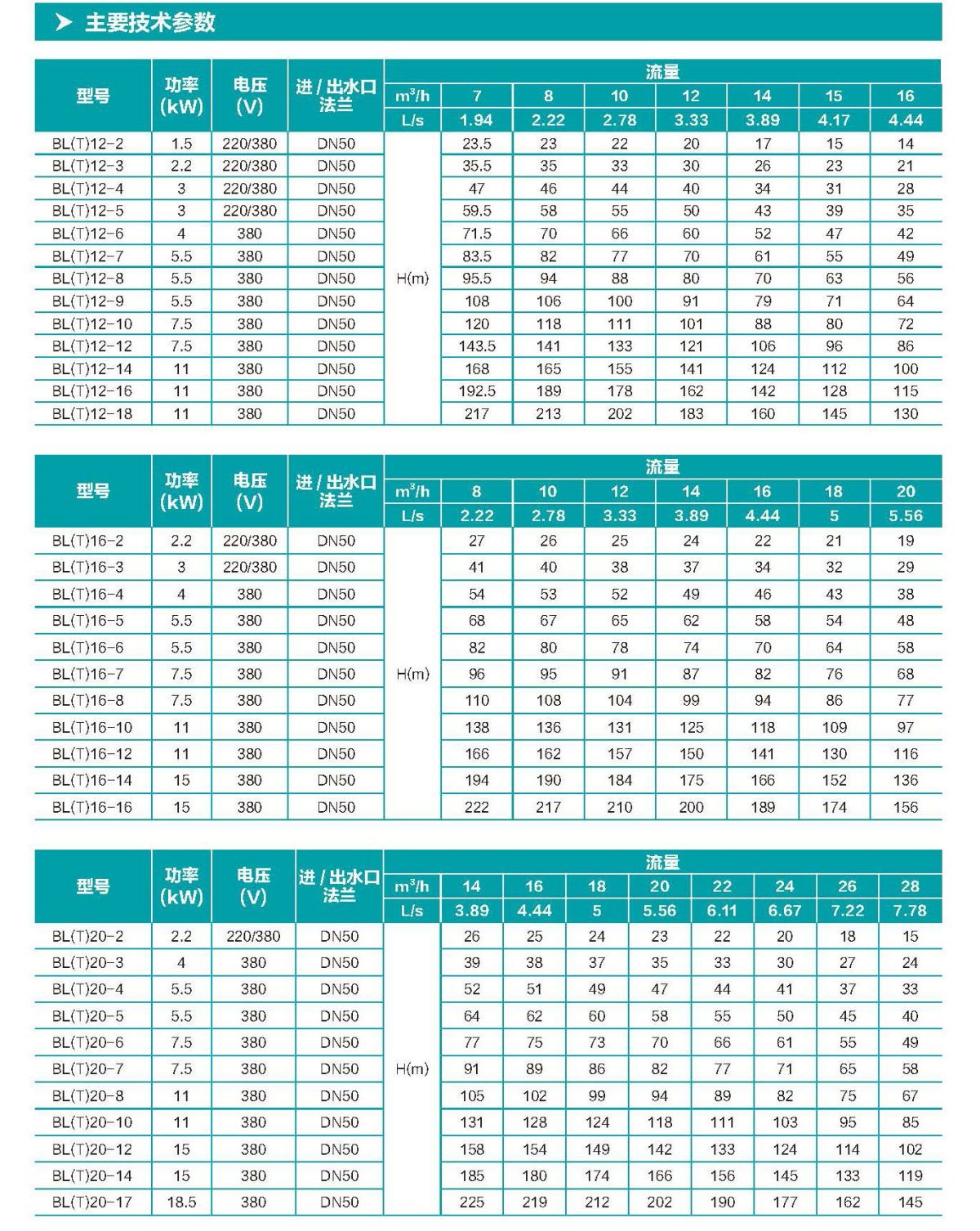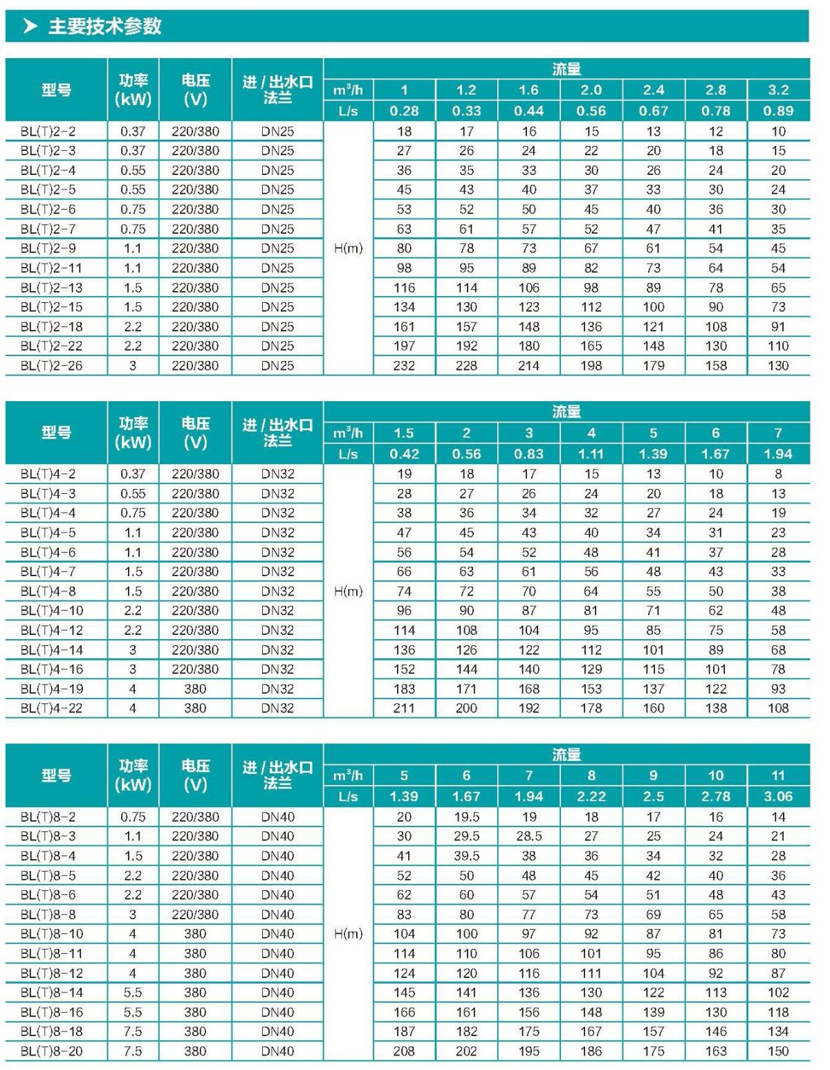 BL(T) 系列輕型不銹鋼立式多級離心泵,是吸收了國內外先進技術而設計 制造的非自吸立式多級離心泵,采用標準立式電機和合金機械密封,更換 非常方便。BL 泵過流部件全為不銹鋼材料,BLT 泵過流部件部分為鑄鐵件, 可適用于輕腐蝕性介質。產品投放市場后,以其高效節能、質量可靠、使 用范圍廣等特點,深受廣大用戶的喜愛。