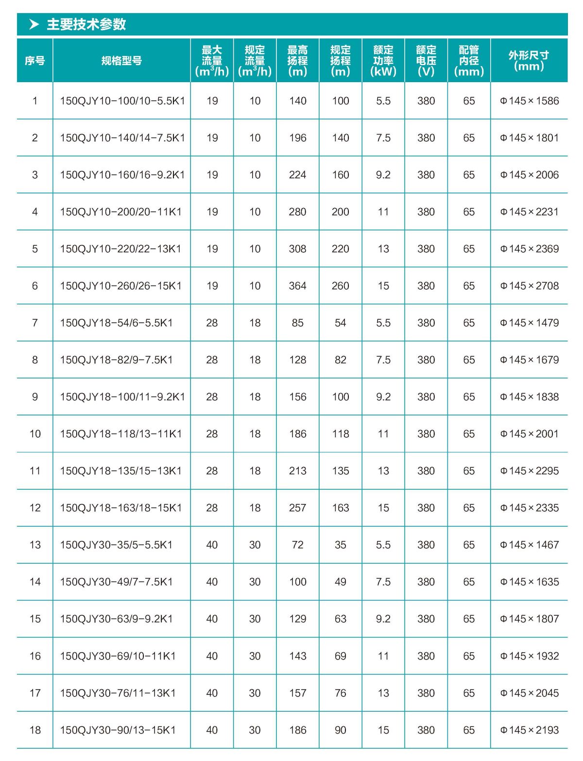 150QJY 井用多級潛水電泵,采用榮膺“品牌中國大獎·最佳科技獎”的超 強“巨能芯”核心技術,品質卓越值得信賴。整體浮動式葉輪結構,耐磨更抗砂; 采用意大利進口機械密封作動密封,固定止口密封處采用雙重“O”型耐油 橡膠密封圈作靜密封,密封更可靠。